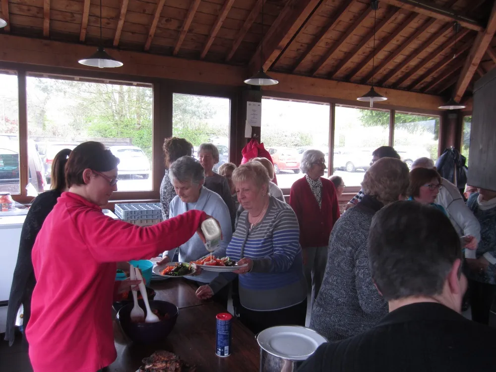 Pour ce qui est du repas proprement dit, notre équipe d’animateurs avait tout préparé pour nous accueillir assoiffés et affamés que nous étions, avec boissons et traditionnelles viandes, sauces et crudités comme il sied en pareille occasion. Et nous pouvons dire que nous nous en sommes donnés à cœur joie, sachant que certains, certaines surtout, se réservaient pour faire Bob.