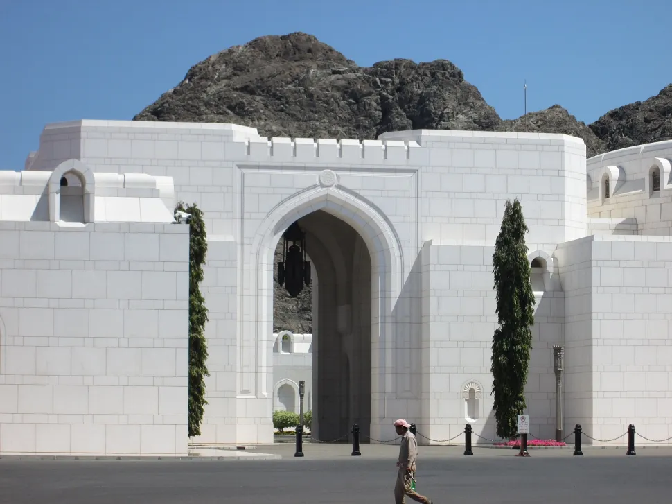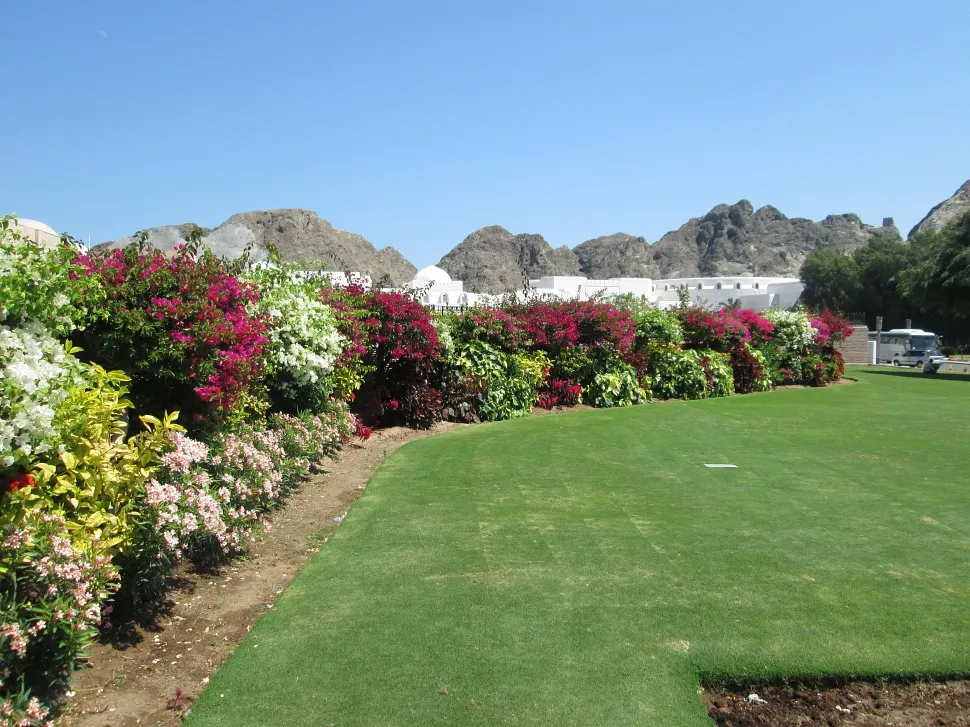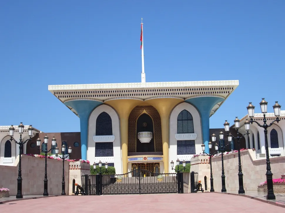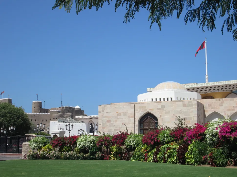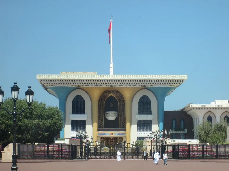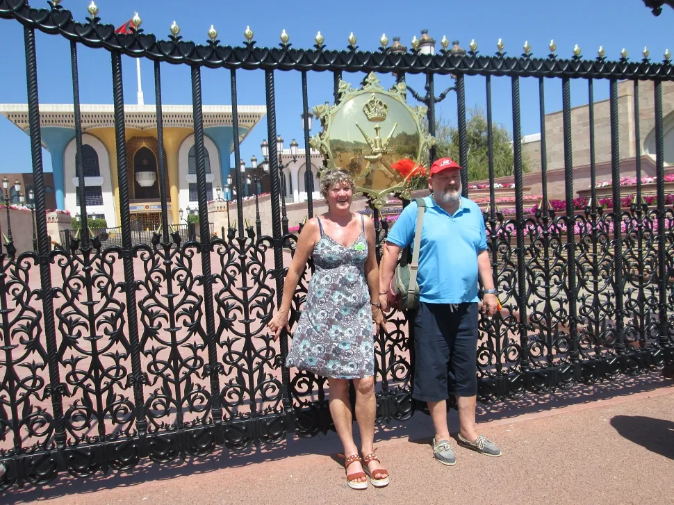 Nous nous arrêtons ensuite au PALAIS AL ALAM, résidence du Sultan QABOOS. Il date de 1972 et est construit dans un style islamique chargé. Il est précédé d’un superbe jardin fleuri où des militaires montent la garde. Pas accessible au public, nous ne verrons pas l’intérieur.