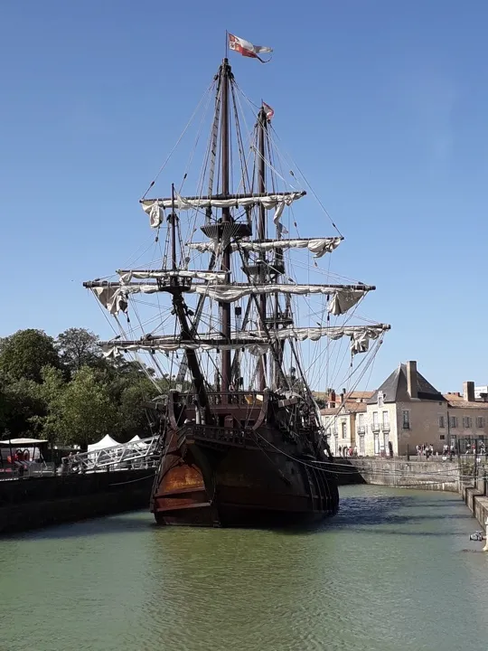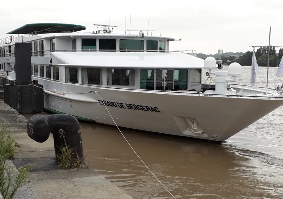 Il y avait aussi place pour des découvertes. Quelle ne fut pas notre surprise en traversant la Garonne à Bordeaux ! Ses eaux étaient hautes et boueuses comme s’il y avait eu de violents orages en amont. Nous allions naviguer dans les mêmes eaux sur la Gironde et la Dordogne. Selon les guides, l’eau n’est ni sale ni boueuse, elle est blonde et riche en nutriments. Les marées de l’océan remontent sur des kilomètres la Garonne et la Dordogne, faisant monter ou descendre le niveau de l’eau. Ainsi, il est possible, quand on est à quai à Bordeaux, de voir un tronc d’arbre descendre au fil de l’eau, puis remonter quelques heures plus tard en fonction des marées. L’eau de mer salée au contact de l’eau douce provoque une précipitation qui explique la couleur de la rivière