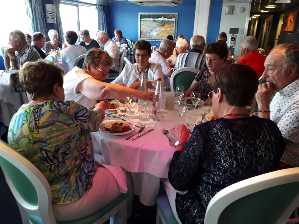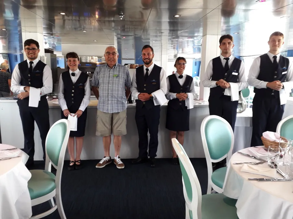 Dans un voyage, il y a plusieurs centres d’intérêt. Ici, il faut citer en premier lieu la table. Presque tous nos repas ont été pris à bord. Le service, les vins, les repas étaient de grande qualité.