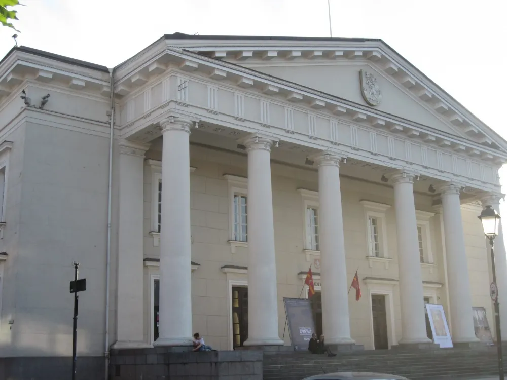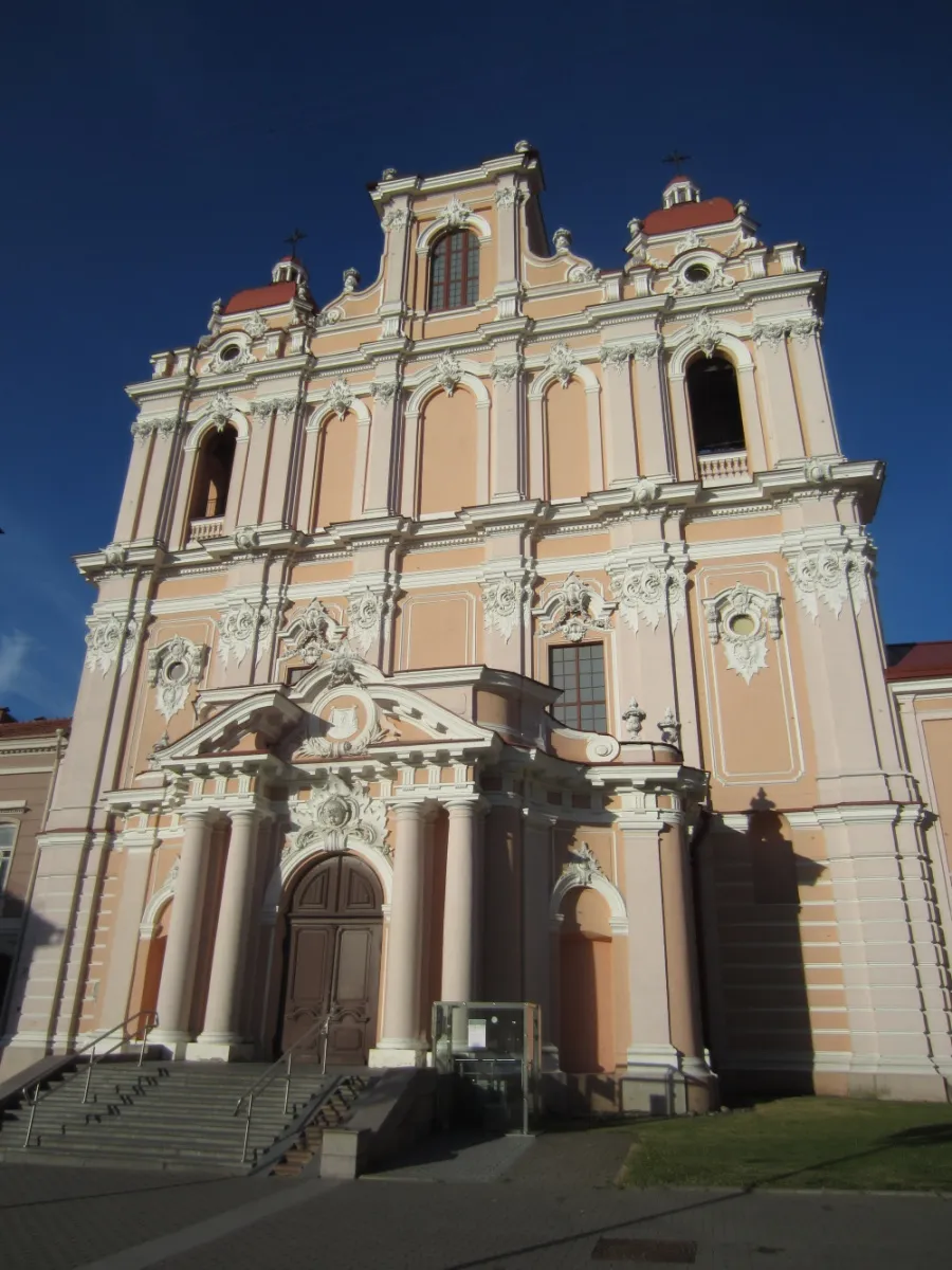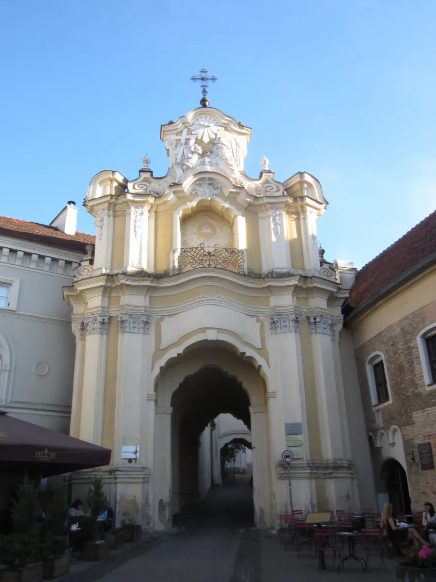 Retour à Vilnius pour déjeuner dans un restaurant situé sur la Place de l’hôtel de Ville, cœur de la Vieille Ville. De là, à 14h, un guide local nous emmène visiter la Vieille Ville fortifiée. Nous remontons vers la Porte d’Aurore surmontée d’une chapelle qui abrite le tableau de la Mère Miséricordieuse. Retournant sur nos pas, nous arrivons sur la Place de la Cathédrale où se trouve aussi le beffroi et d’où nous apercevons la Tour Gediminas et la colline des Trois Croix. De style néoclassique, la cathédrale date de la fin du 18ième siècle. Transformée sous l’occupation soviétique en galerie de peinture, elle a été rendue au culte en février 1989. Et voilà qu’il se met à pleuvoir. Mais ça ne nous empêche pas de cheminer vers l’Eglise Sainte Anne de style gothique ; grâce et harmonie s’en dégagent. C’est un véritable bijou et on comprend pourquoi Napoléon 1er aurait bien voulu l’emporter pour la déposer à côté de Notre-Dame de Paris.