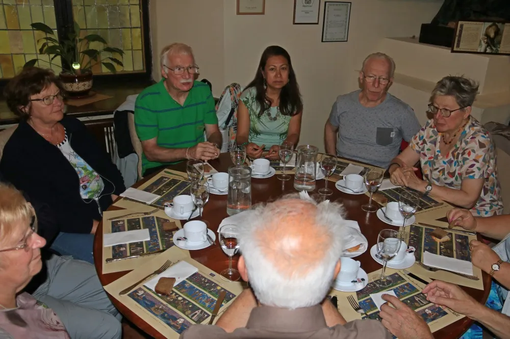 Après le déjeuner, cap sur l’Est de Tallinn pour découvrir Kadriorg, son palais baroque du 18ième siècle (le tsar Pierre 1er le Grand lui-même en a posé la première pierre en 1718) et son grandiose parc que nous traversons. Retour à l’hôtel afin de nous préparer pour le dernier souper que Martine et Bernard ont voulu festif. C’est ainsi que nous nous retrouvons au restaurant Hansa situé derrière l’Hôtel de Ville. Ambiance médiévale, serveuses et serveurs en costumes d’époque, éclairage à la bougie, multitude de plats surprenants mais délicieux ; c’est sympa !