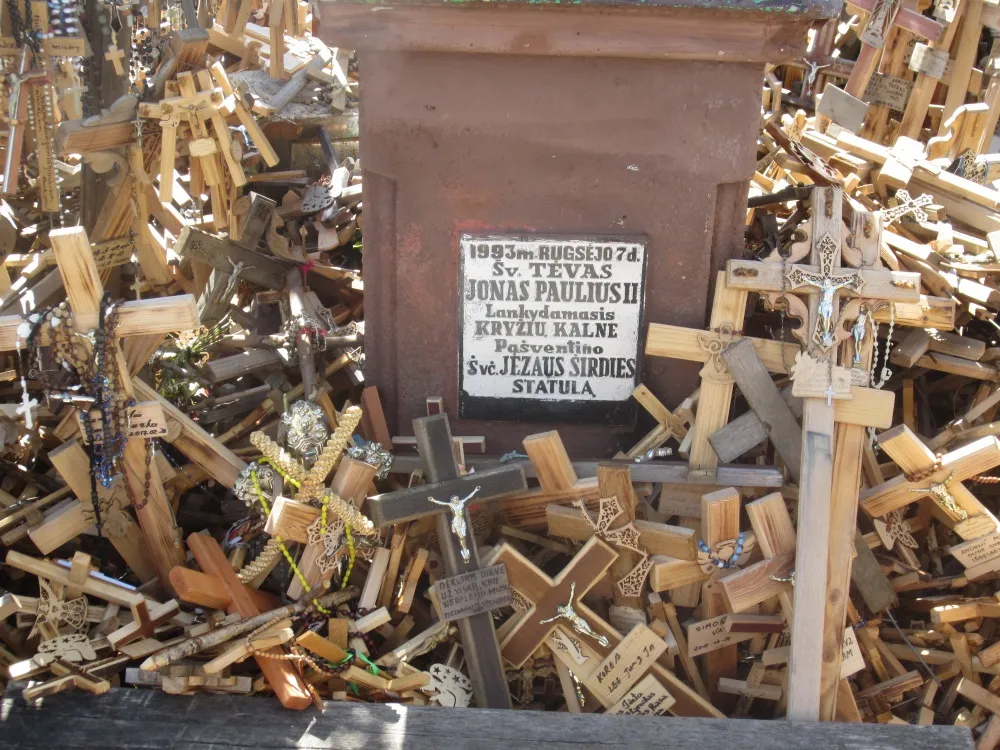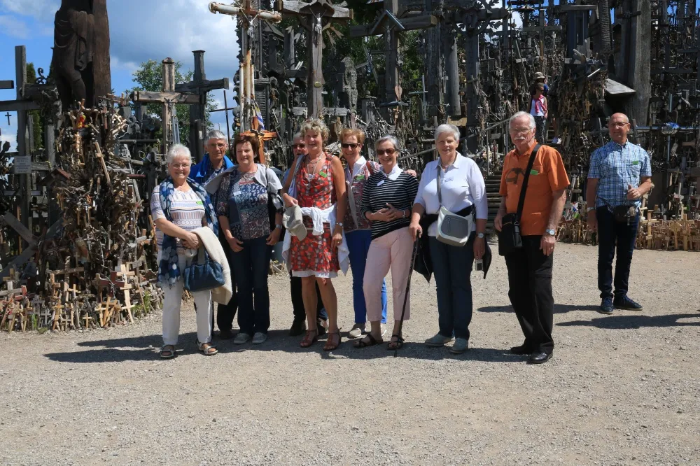 Jeudi 8 juin, 3ième jour : Cap sur le Nord et la Lettonie. Le soleil est de la partie. Avant de franchir la frontière, halte à Siauliai et par un Chemin à travers champs, nous arrivons à la Colline aux Croix où sur un espace de plusieurs centaines de mètres carrés s’entremêlent :