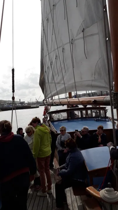 Maîtriser un bateau à voiles n’est pas chose aisée. Nos quatre marins qui nous accompagnaient nous rassurèrent et nous mirent au travail quand il fallut hisser les voiles, moteur arrêté. Moment inoubliable pour beaucoup !