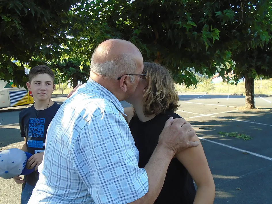 La route est chargée et la circulation ralentie, dans la région de Bordeaux une pinède est en feu, de loin nous voyons de la fumée et le ballet des canadaires. Nous arrivons CHEZ KATINA VERS 19h, pas une minute à perdre!! Eliane (la maman) monte dans le car, nous souhaite la bienvenue (ongi ettori) et distribue les chambres. L’organisation nous bluffe!