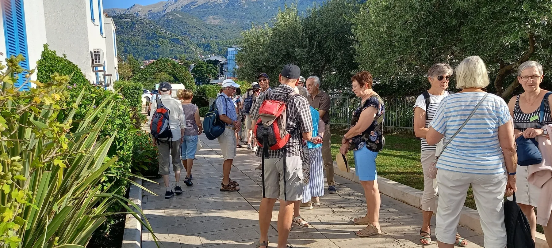 A notre arrivée à Tivat, il fait chaud et ensoleillé. Nous nous réunissons rapidement devant l’aéroport où nous sommes accueillis par notre guide Zorka ou Zoya suivant le degré de connivence que nous aurons avec elle. Notre chauffeur Vuk nous conduit à Budva par une route en front de mer qui nous dévoile déjà de superbes paysages. Nous traversons de jolis villages côtiers et nous arrivons à Budva où le car nous dépose à l’Hôtel Aleksandar. Première surprise : nous nous réunissons dans le lounge où nous recevons un excellent drink de bienvenue et où l’on nous distribue des bracelets : c’est un hôtel All in !
