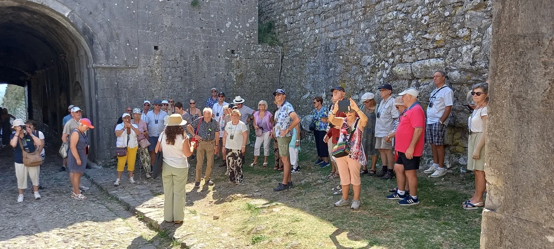 Ce mercredi, nous reprenons la route côtière vers le sud jusque Bar, principal port du littoral monténégrin, puis nous montons vers la vieille ville appelée Stari Bar et ses remparts, connue depuis la Grèce Antique et occupée tour à tour par les Grecs, les Vénitiens et les Ottomans. Pour entrer dans la ville fortifiée, il nous faut de nouveau franchir une rue pavée en forte pente qui découragera plusieurs de nos participants. Notre guide va de nouveau nous saouler de détails historiques superflus qui combinés à la chaleur ambiante vont démotiver bon nombre d’entre nous. La région est tout entière plantée d’oliviers et d’agrumes et au retour, sur le chemin pavé, nous nous attardons dans les petites échoppes pour des dégustations et des achats de jus de fruits frais et d’huiles d’olive. Nous partons ensuite pour déjeuner le long de la rivière Bojana dans un joli restaurant surplombant la rivière. L’après-midi, il fait toujours très chaud quand le bus nous dépose sur un parking rempli de déchets de bouteilles plastic et qui surplombe la plage et le village d’Ulcinj. Cette ville, la plus méridionale du pays et proche de la frontière albanaise a été longtemps le refuge de pirates et le siège de la traite des esclaves en direction de Tripoli. Nous reprenons la route côtière pour rentrer tard à Budva.